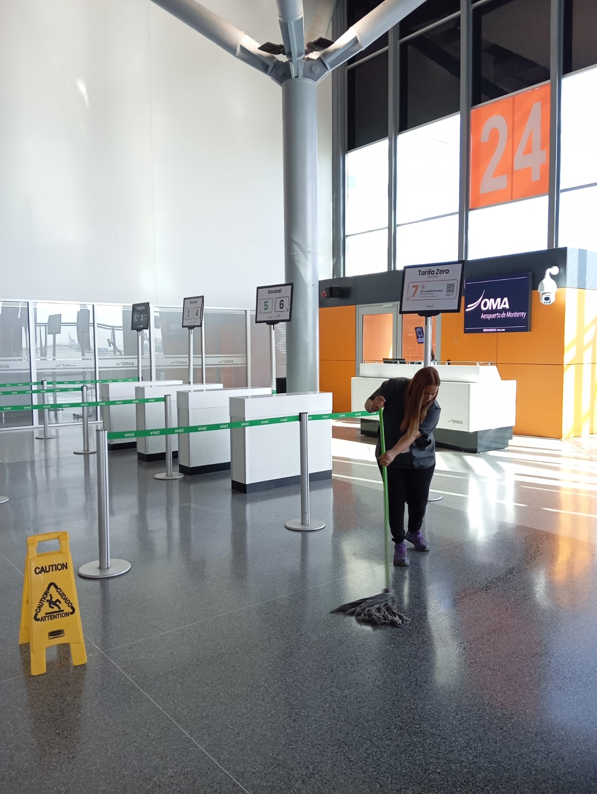 La limpieza de aeropuertos es otro de nuestros servicios especializados con demanda en Monterrey. Actualmente proveemos servicios de limpieza en el Aeropuerto Internacional Mariano Escobedo el cual es el más representativo de la ciudad y del área metropolitana. Sabemos que garantizar el óptimo estado de las instalaciones de un aeropuerto es una tarea exigente que impacta en el desarrollo y competitividad de toda ciudad. DIEGZA cuenta con amplia experiencia en servicios de limpieza relacionados a aeropuertos partiendo del objetivo que la limpieza y conservación de aeropuertos debe cumplir con un grado de excelencia propio de un lugar de alta afluencia de personas.
